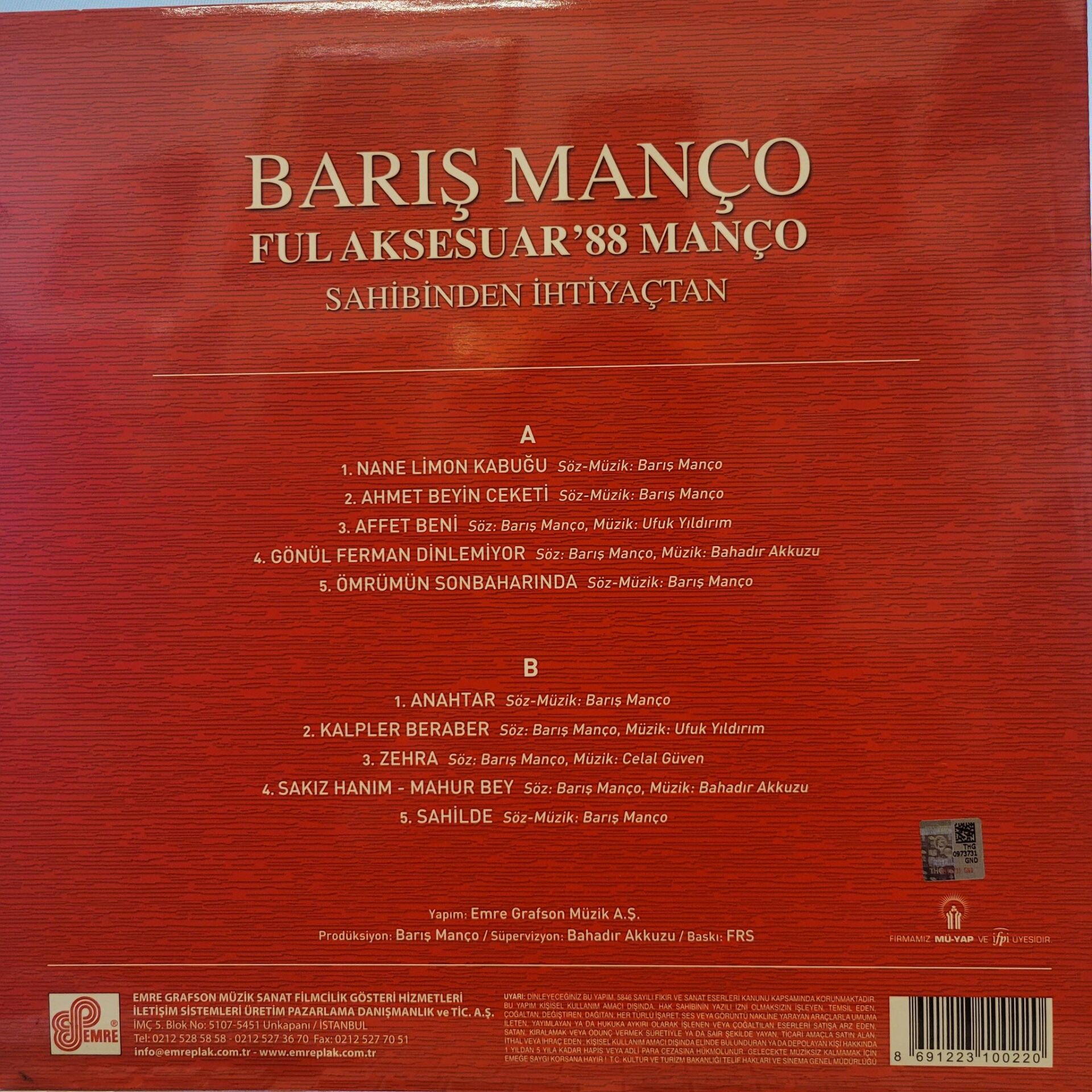 BARİŞ MANÇO - FUL AKSESUAR '88 MANÇO LP PLAK