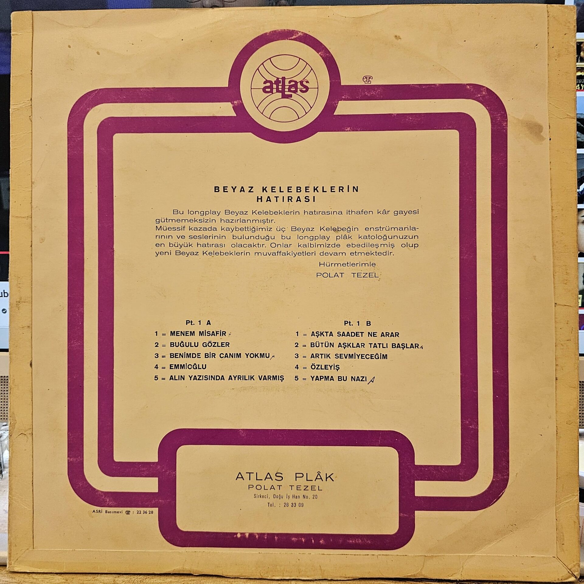 Beyaz Kelebekler – Beyaz Kelebeklerin Hatırası LP PLAK