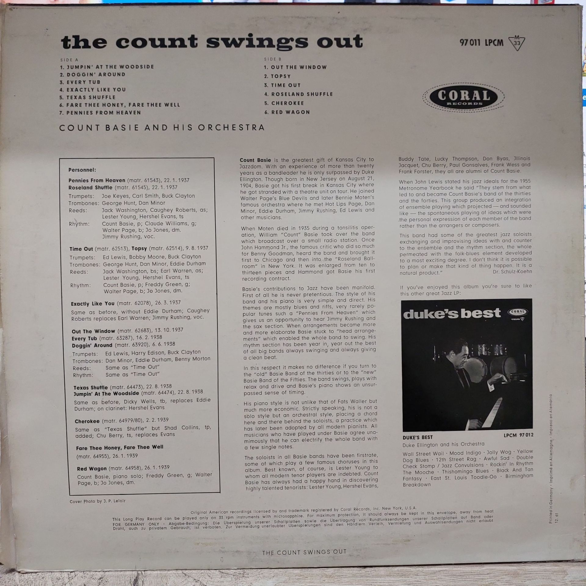 Count Basie And His Orchestra – The Count Swings Out LP PLAK