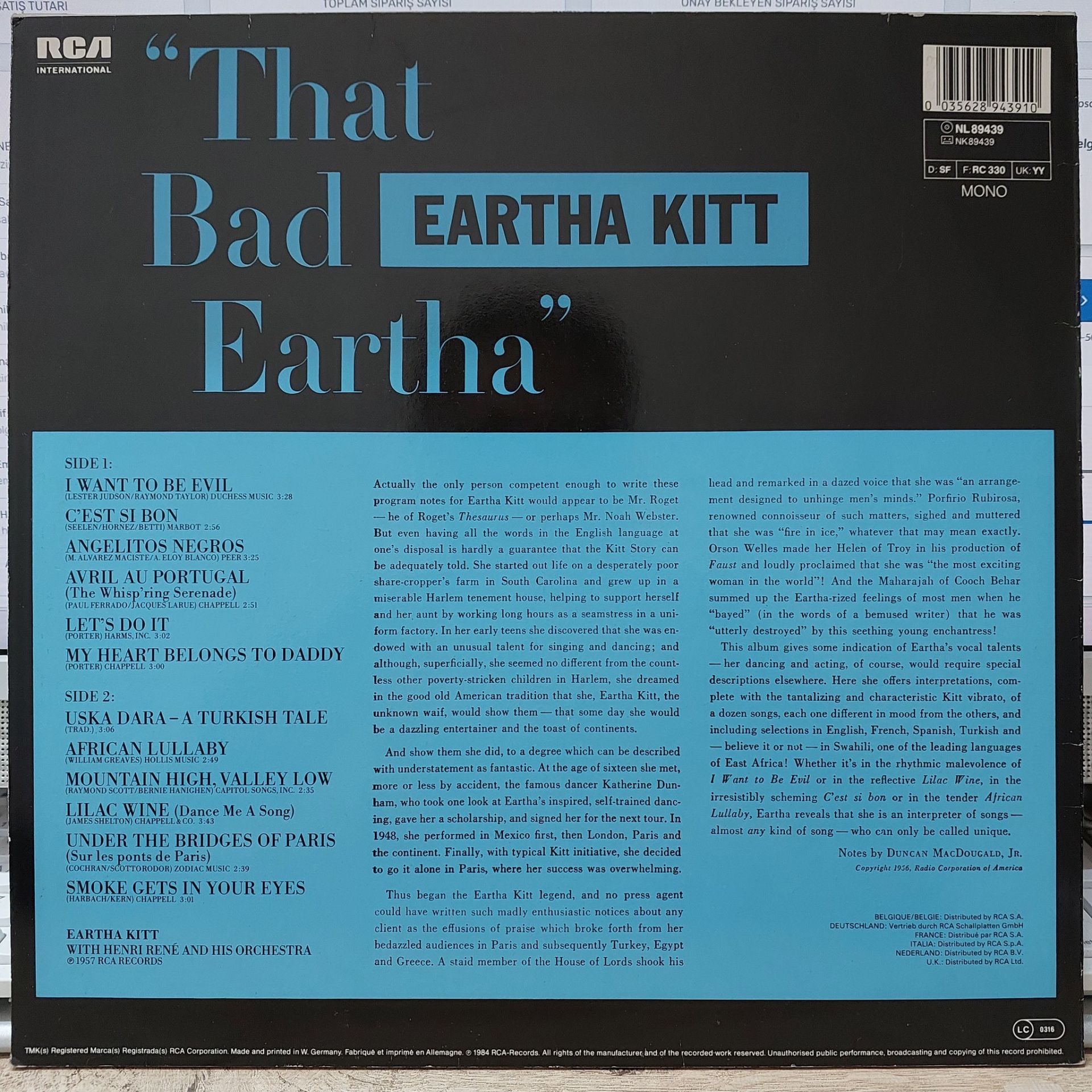 Eartha Kitt With Henri René And His Orchestra – That Bad Eartha LP PLAK