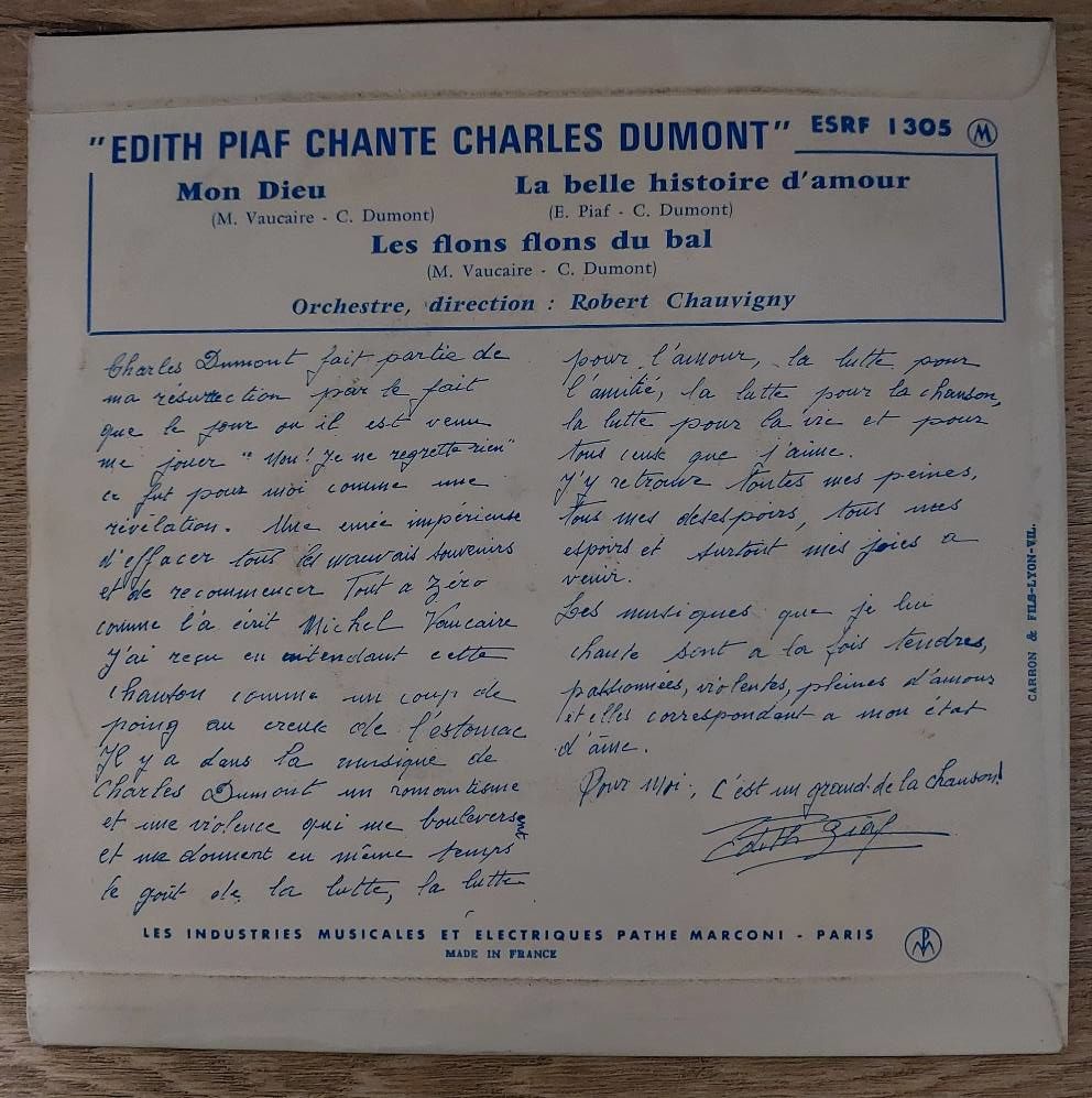 Edith Piaf – Edith Piaf Chante Charles Dumont 45LİK PLAK