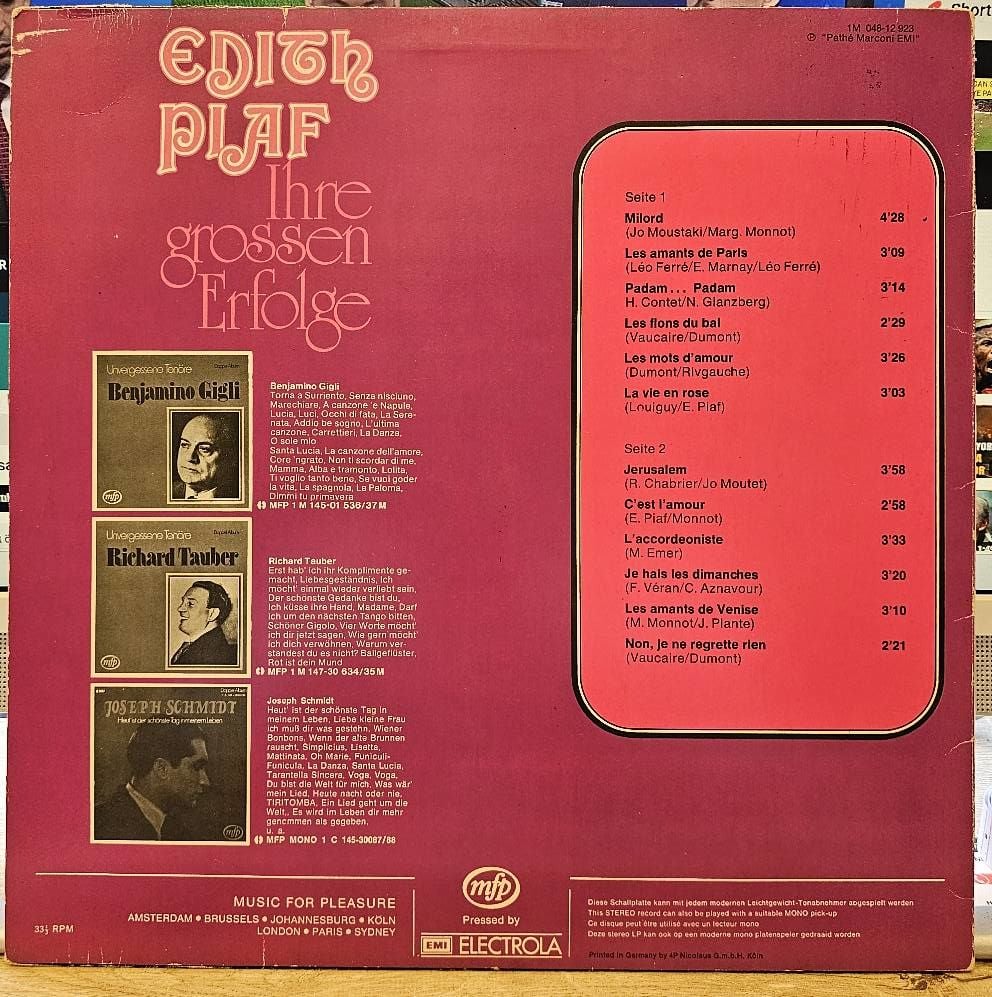 Edith Piaf – Ihre Grossen Erfolge LP PLAK