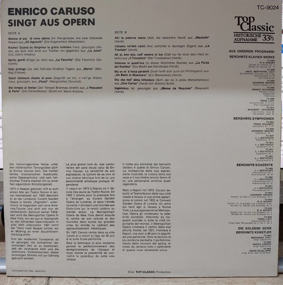 Enrico Caruso – Enrico Caruso Singt Aus Opern LP PLAK