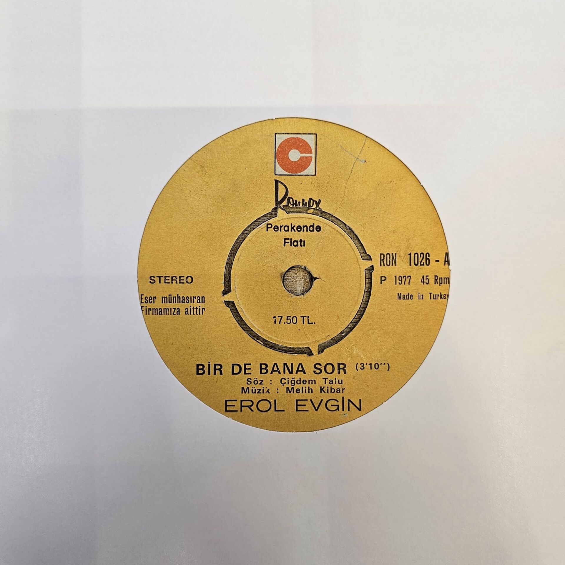 Erol Evgin – Bir De Bana Sor / Etme Eyleme 45LİK PLAK