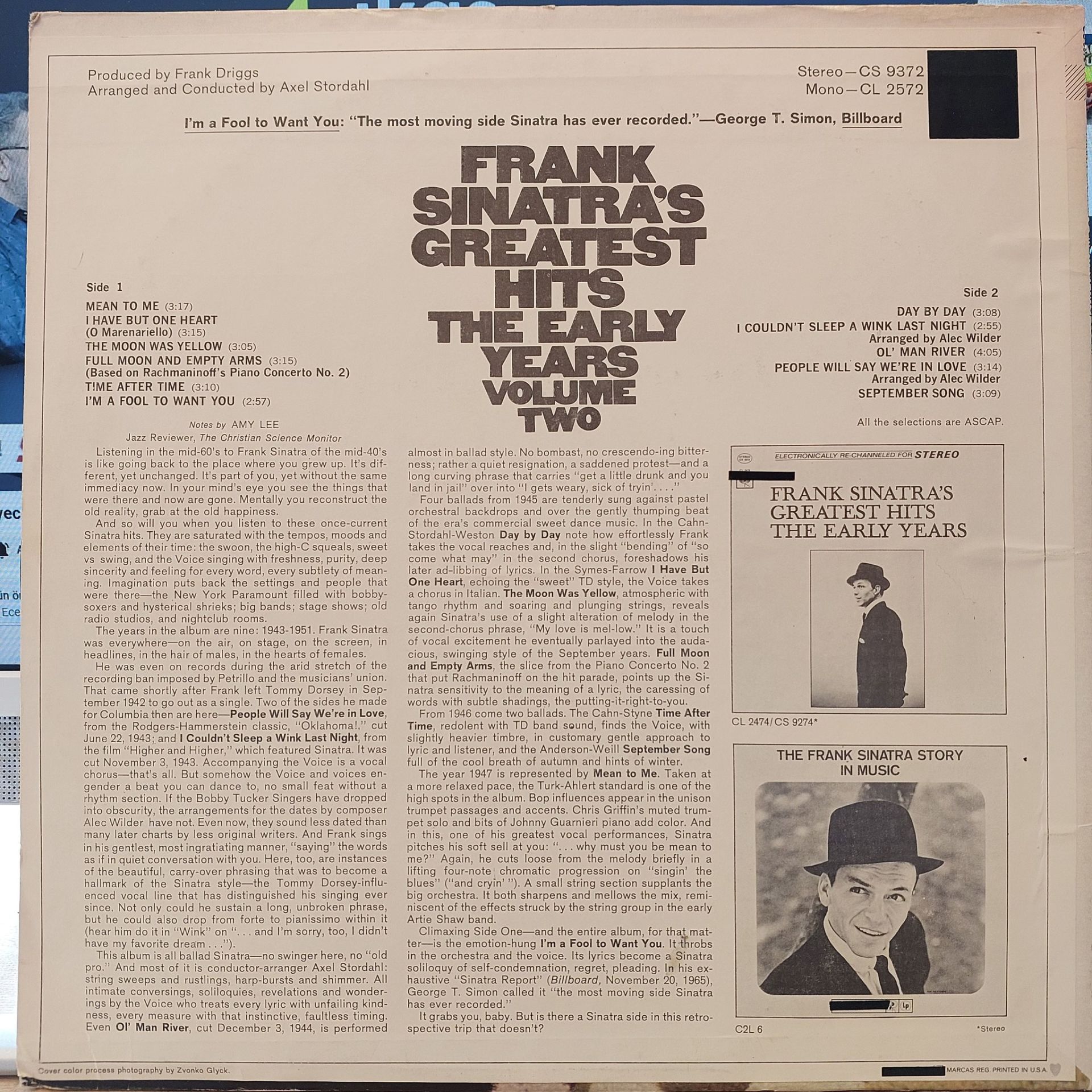 Frank Sinatra – Frank Sinatra's Greatest Hits - The Early Years - Volume Two LP PLAK