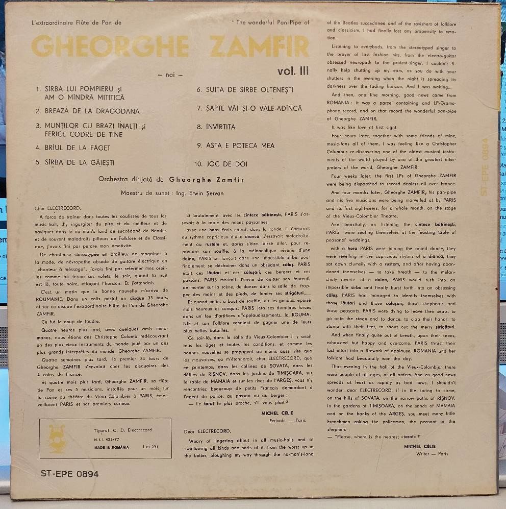 Gheorghe Zamfir – L'Extraordinaire Flûte De Pan De Gheorghe Zamfir Vol. III / The Wonderful Pan-Pipe Of Gheorghe Zamfir Vol. III LP PLAK