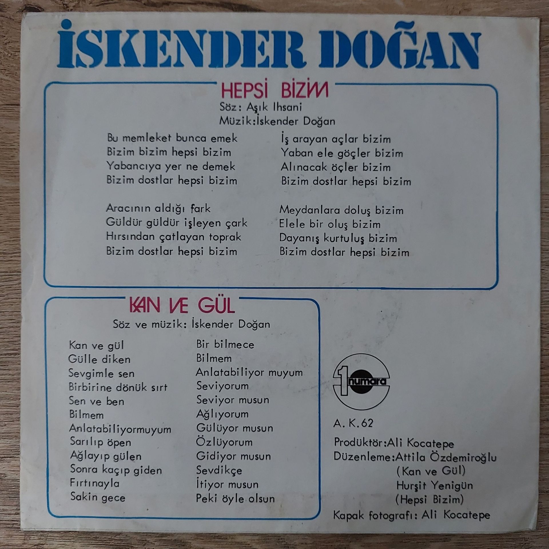 İskender Doğan – Hepsi Bizim / Kan Ve Gül 45LİK PLAK