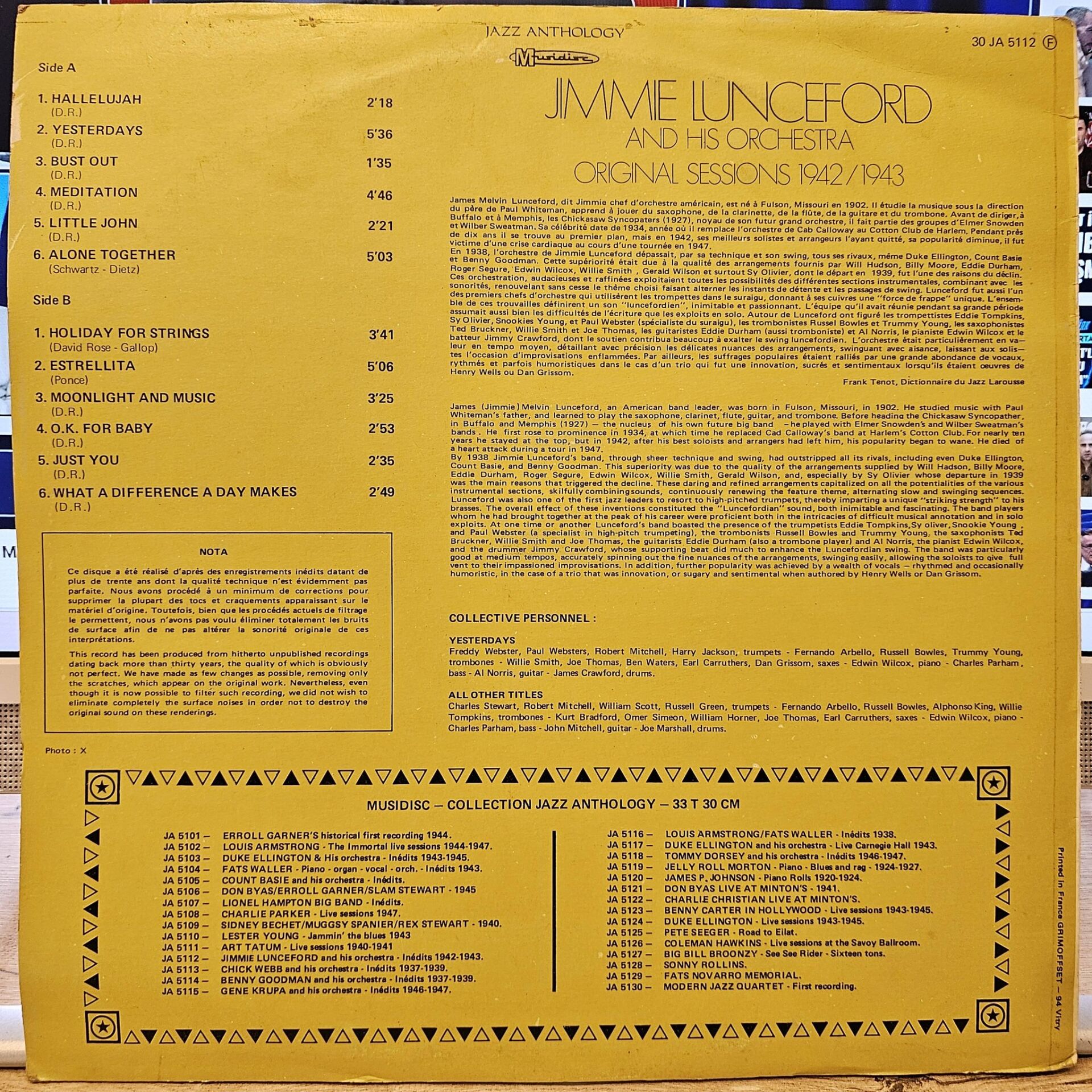 Jimmie Lunceford And His Orchestra - Original Sessions 1942/1943 album cover More images LP PLAK