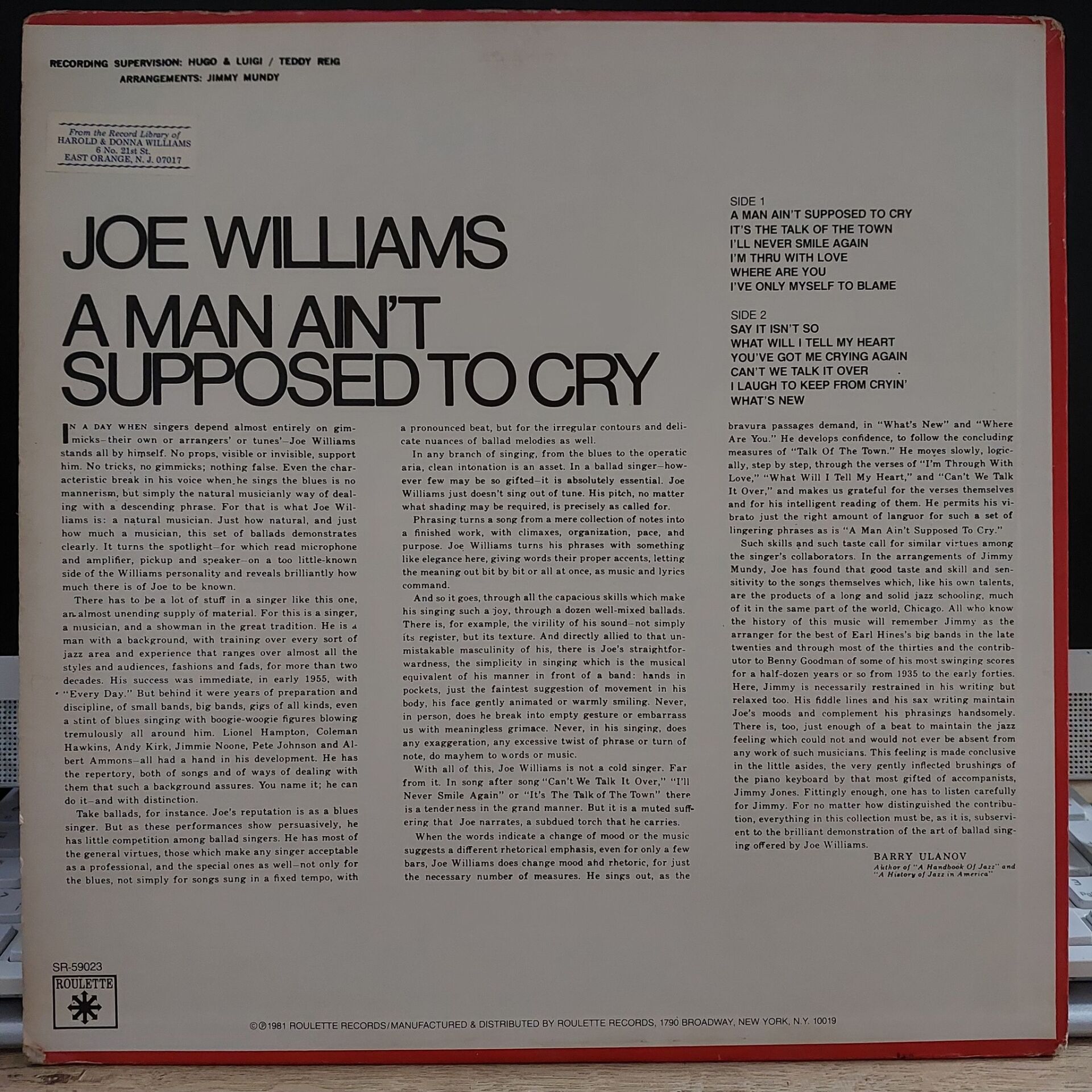 Joe Williams – A Man Ain't Supposed To Cry LP PLAK