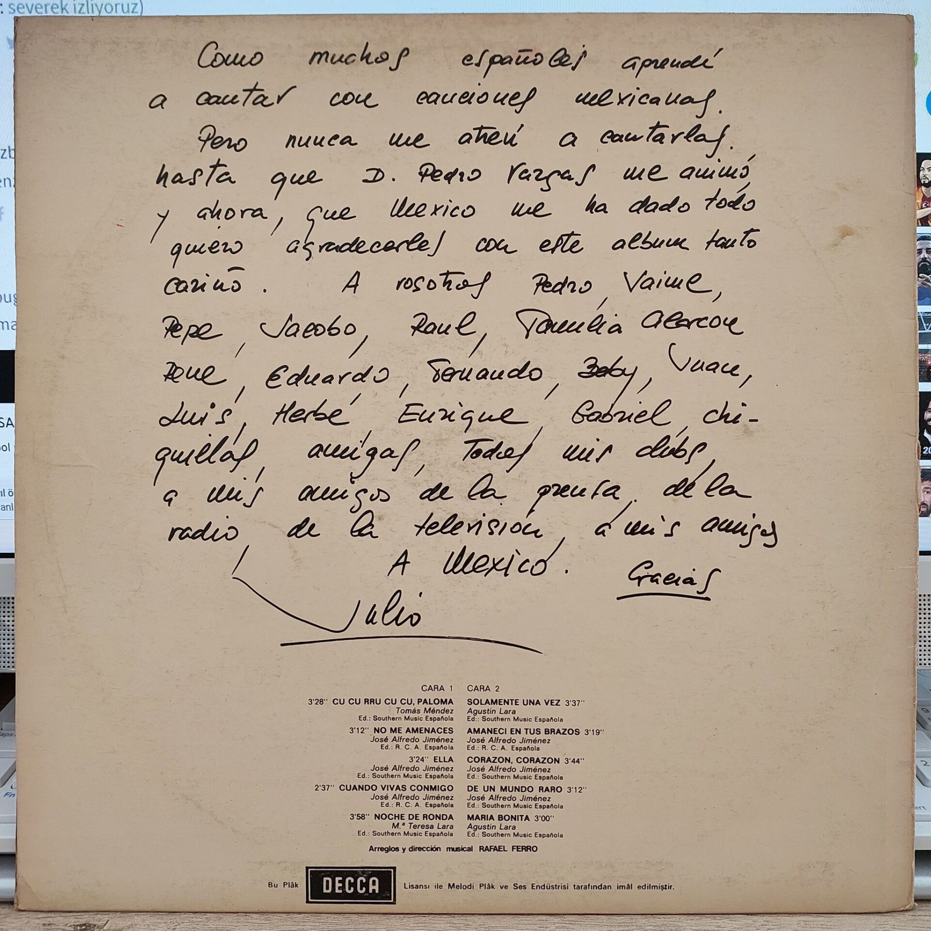 Julio Iglesias – A Mexico LP PLAK