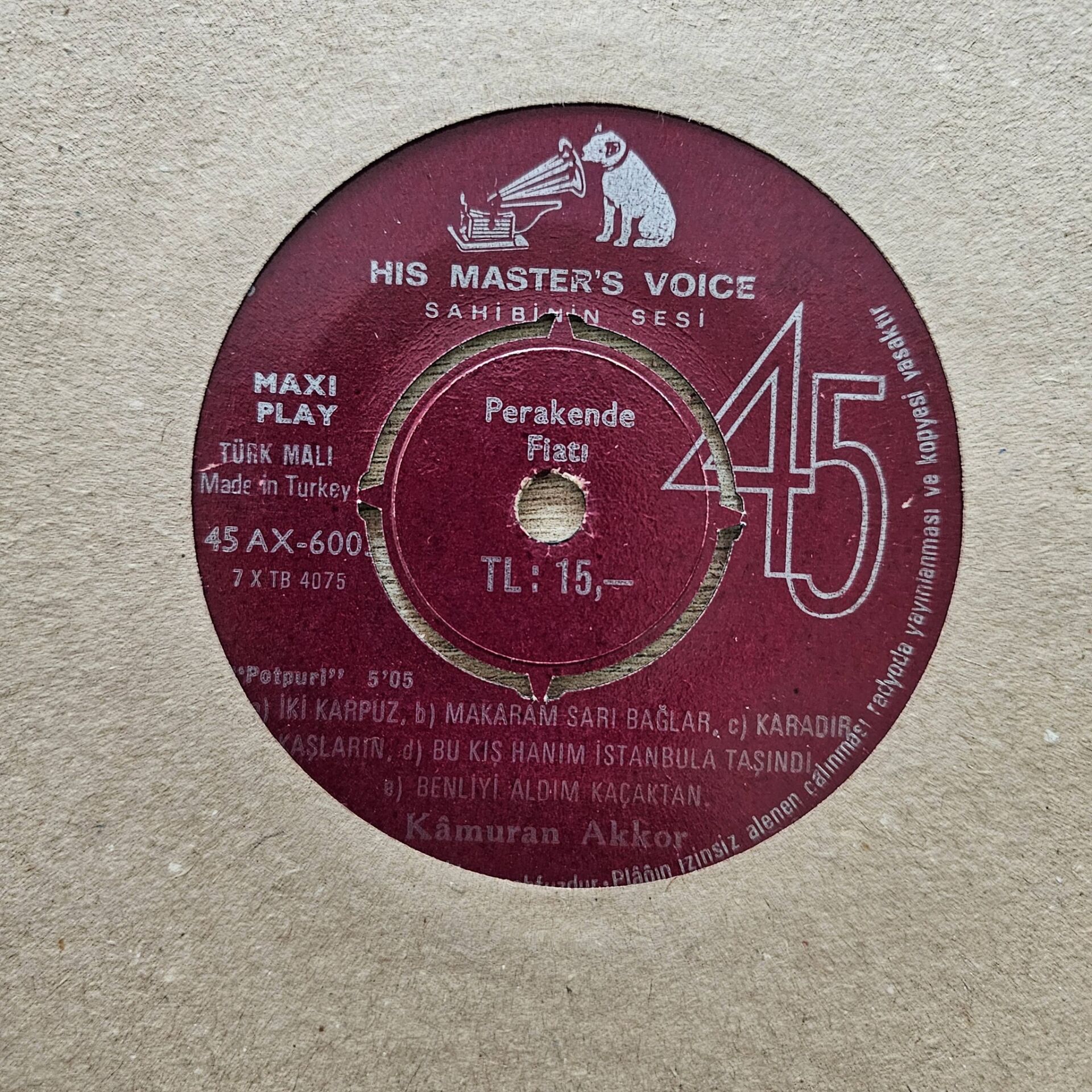 Kâmuran Akkor – Potpuri 8 ŞARKILIK 45LİK PLAK