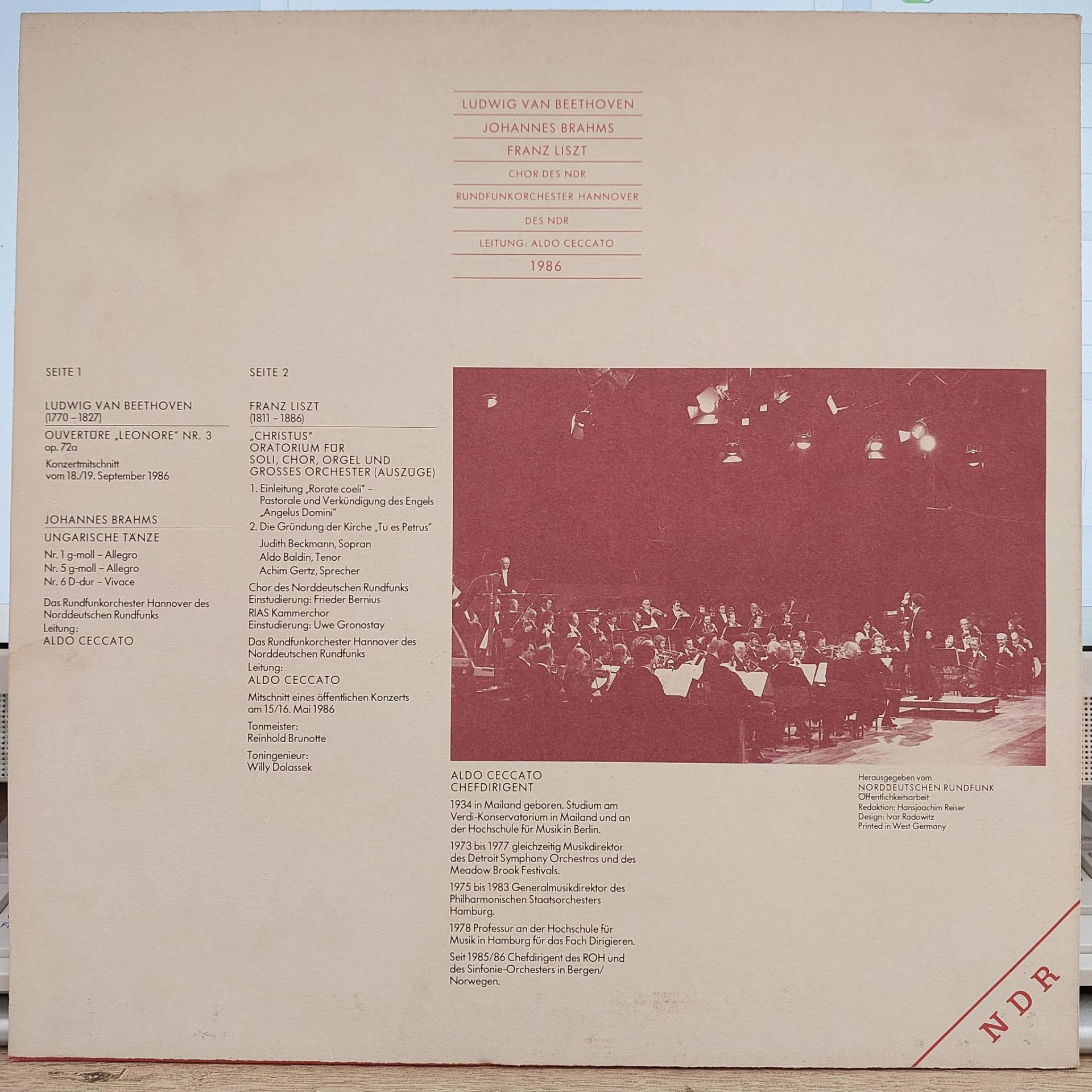 Ludwig van Beethoven, Johannes Brahms, Franz Liszt, Aldo Ceccato – NDR Live Concerto 1986, Promo LP PLAK...