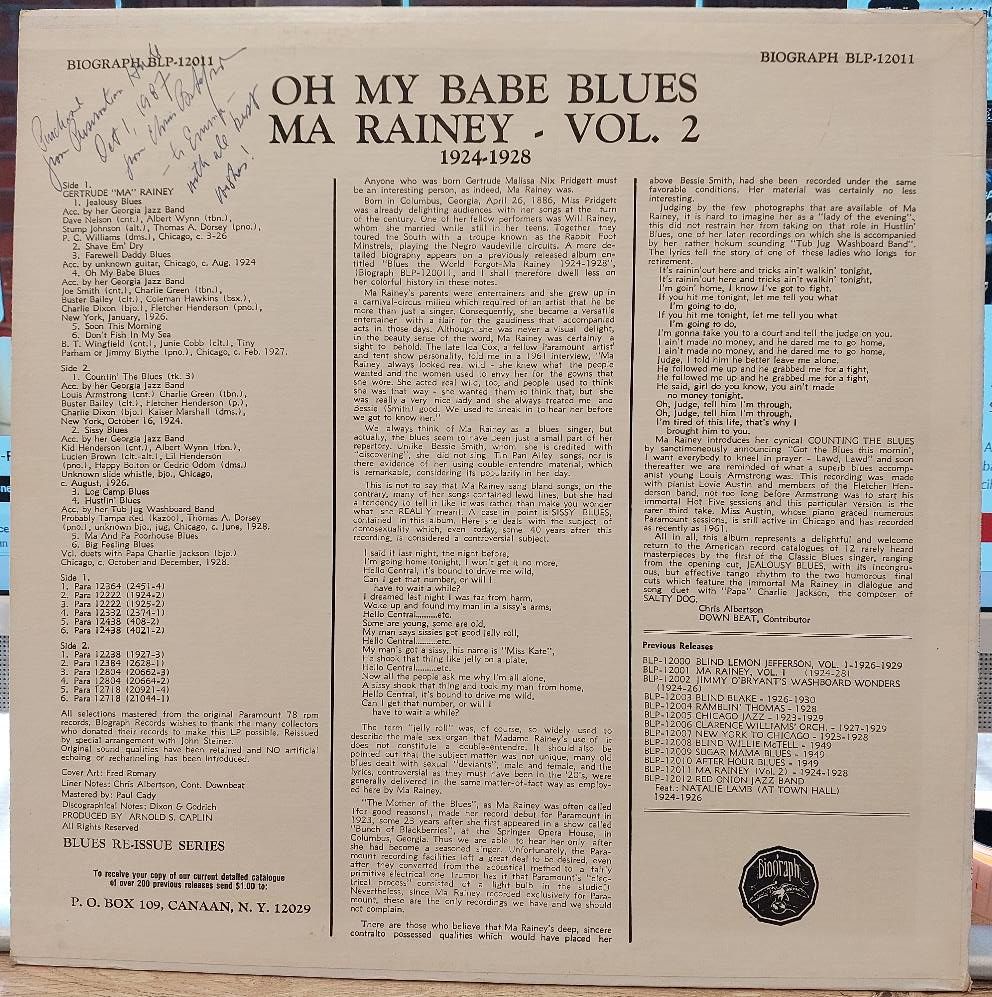 Ma Rainey And Her Georgia Jazz Band* – Oh My Babe Blues (1924-1928) LP PLAK...