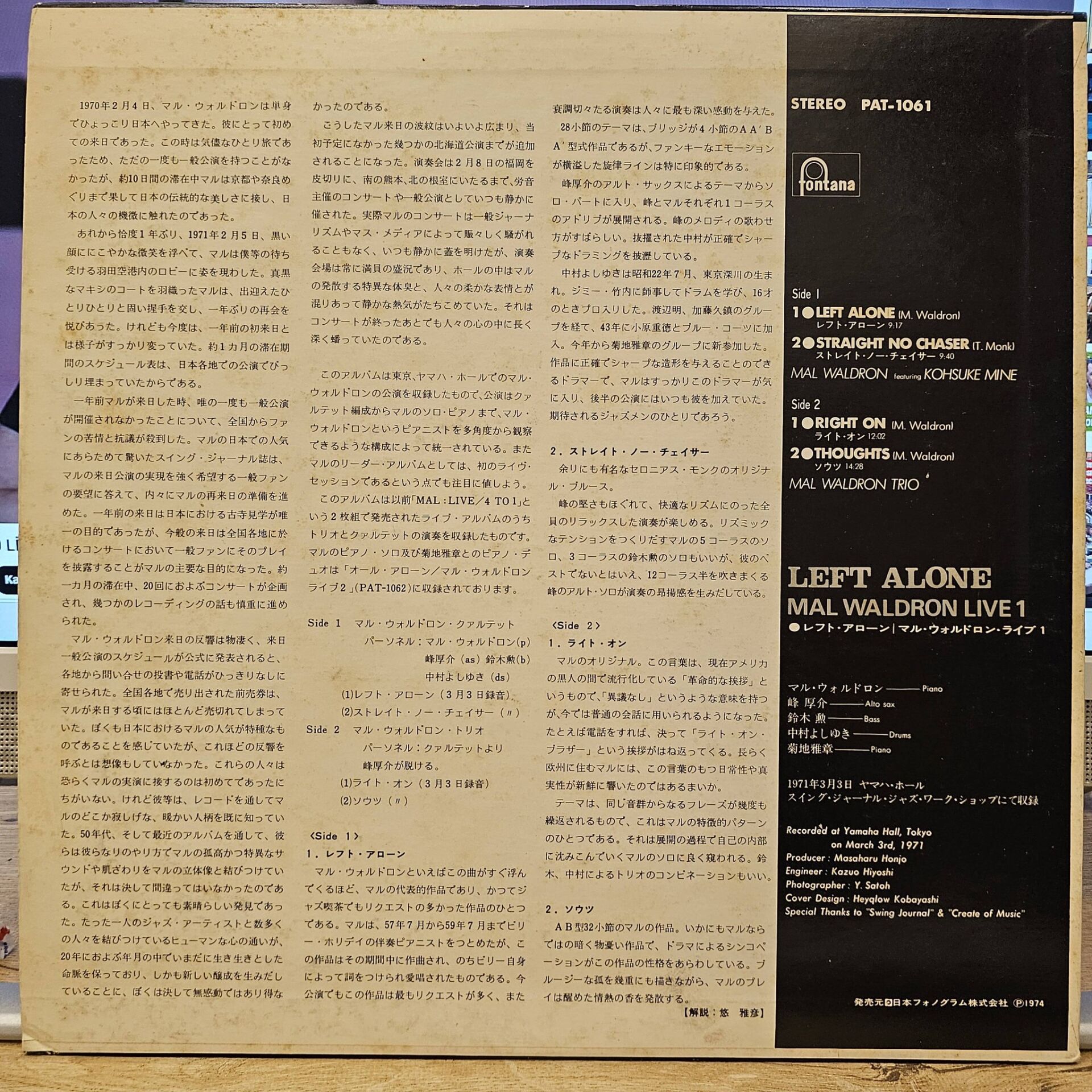 A1 Mal Waldron Quartet Featuring Kohsuke Mine– Left Alone