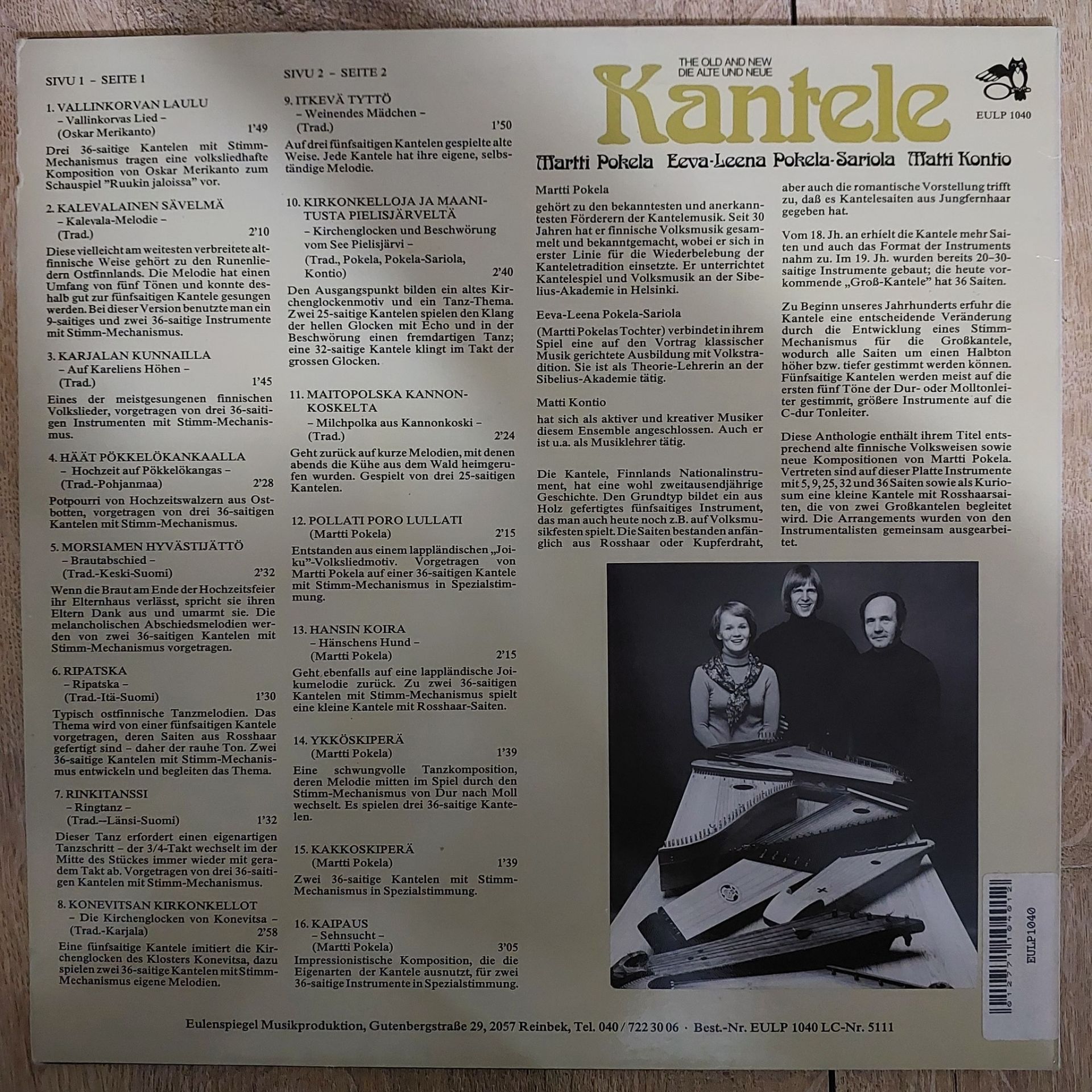 Martti Pokela, Eeva-Leena Pokela-Sariola, Matti Kontio – Die Alte Und Neue Kantele LP PLAK