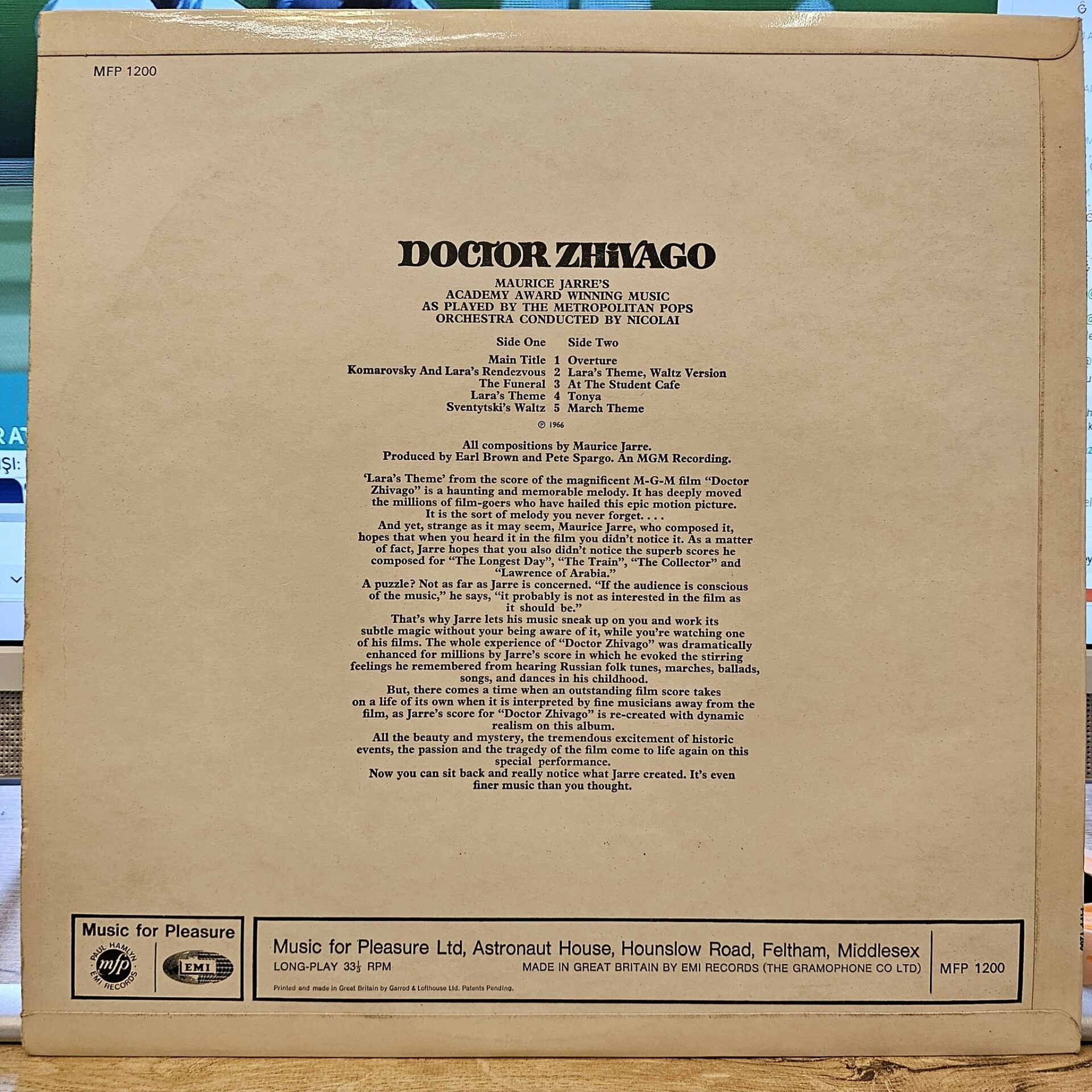 Maurice Jarre / The Metropolitan POPS Orchestra – Doctor Zhivago LP PLAK