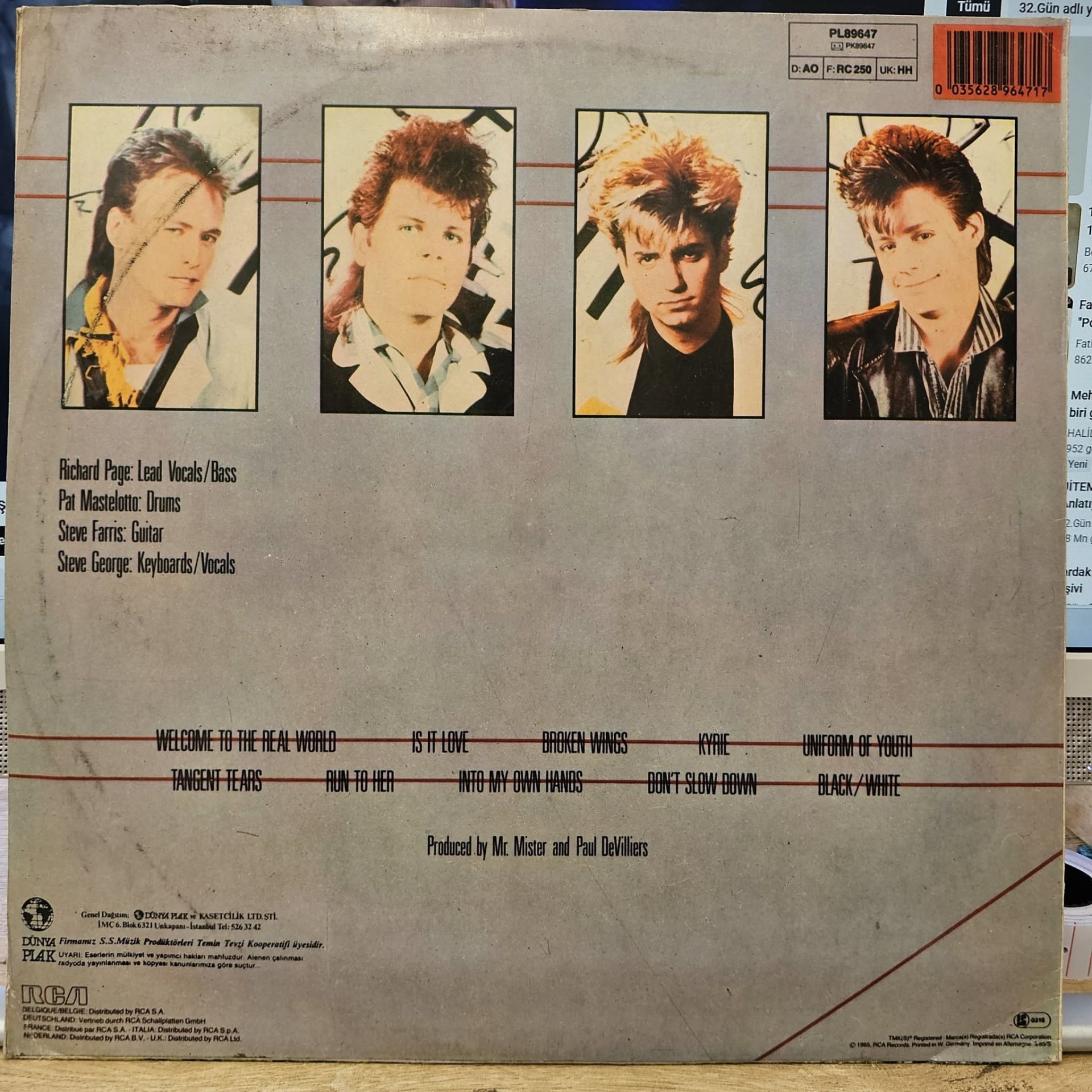 Mr. Mister – Welcome To The Real World LP PLAK
