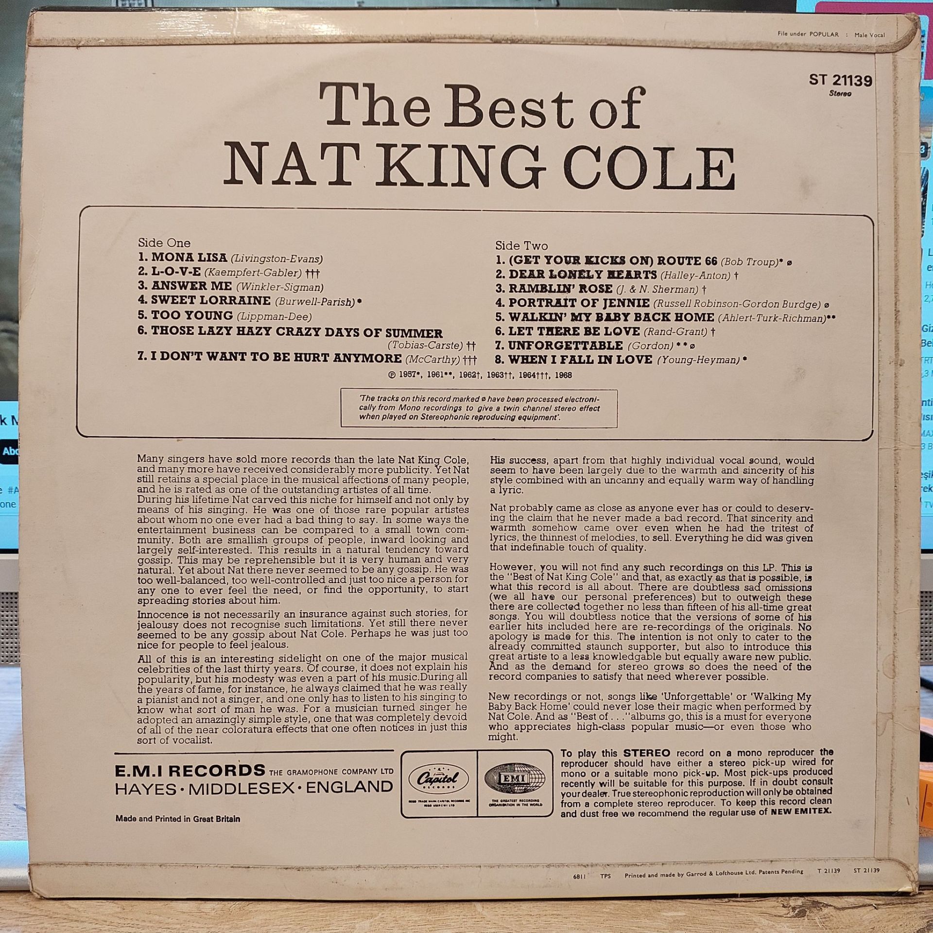 Nat King Cole – The Best Of Nat King Cole LP PLAK