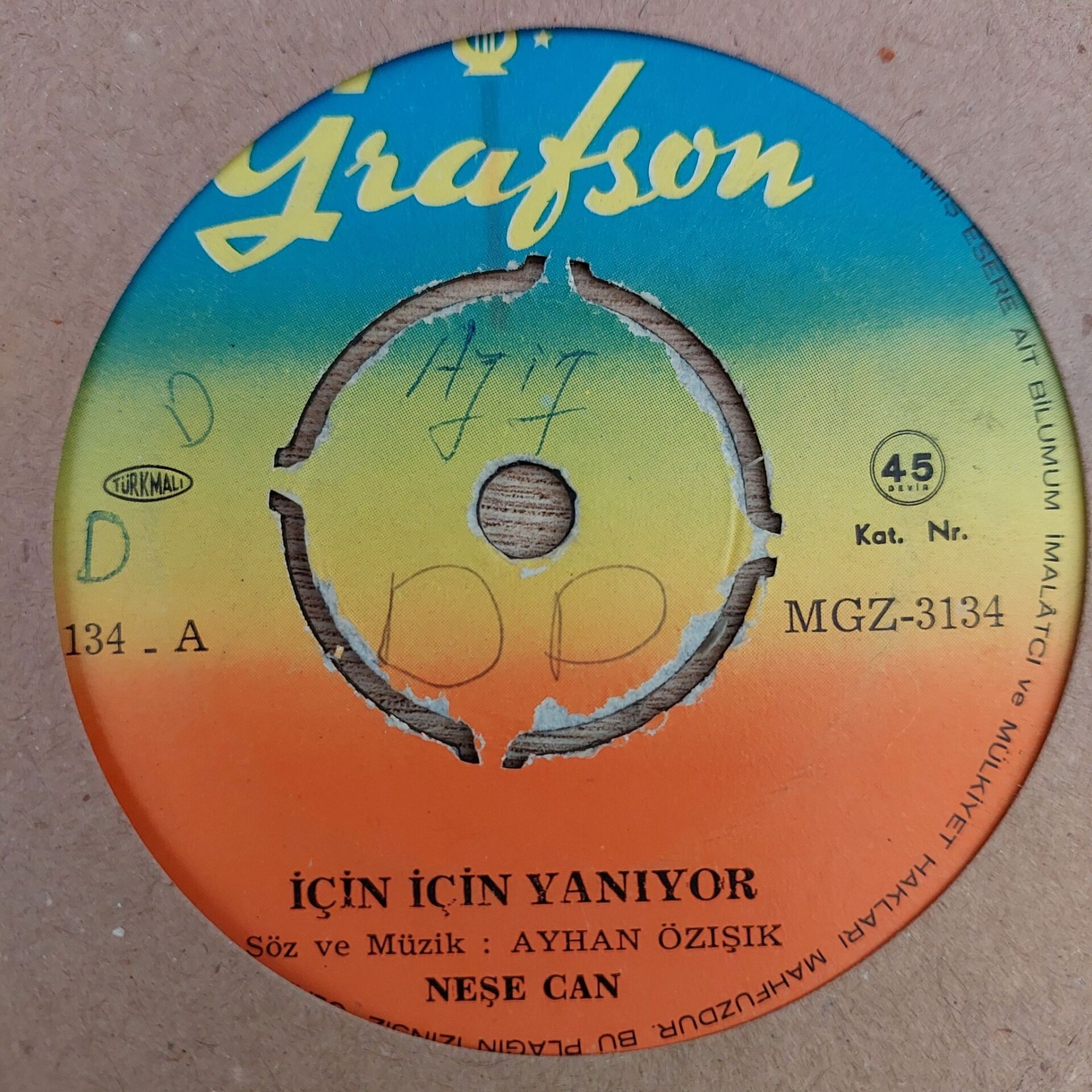 Neşe Can – İçin İçin Yanıyor / Ne Vefa Şevkat, Ne Sevgi Varmış 45LİK PLAK