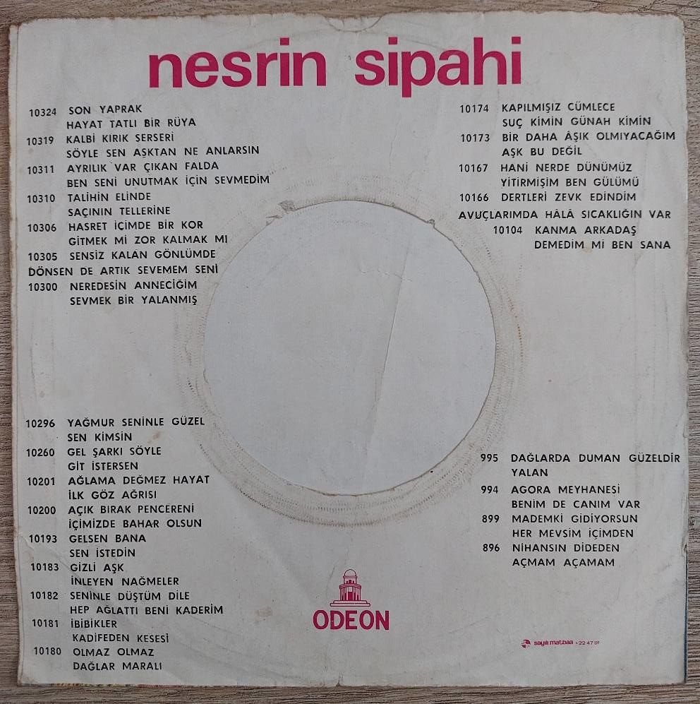 Nesrin Sipahi – Kalbi Kırık Serseri / Söyle Sen Aşktan Ne Anlarsın 45LİK PLAK