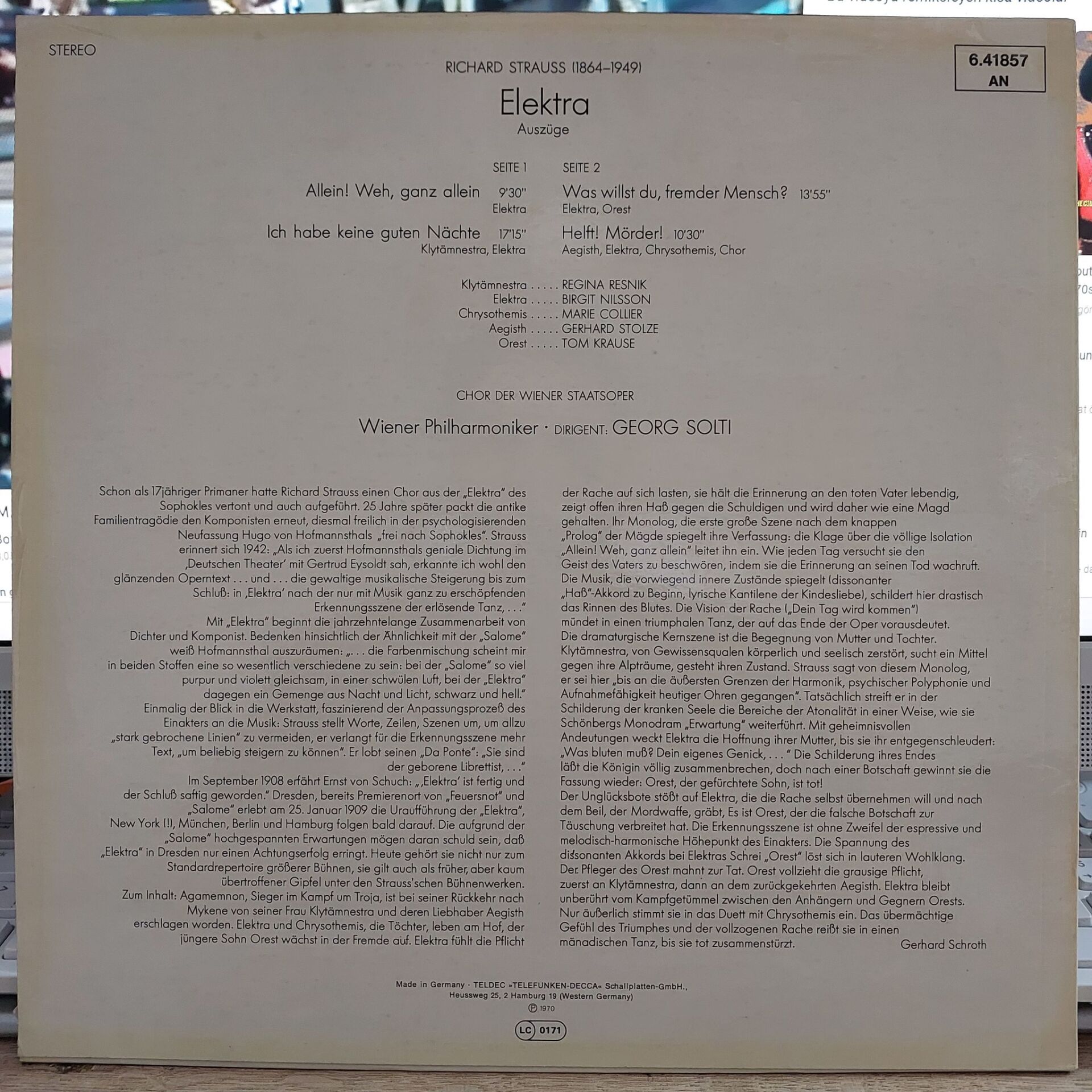 Richard Strauss - Nilsson*, Resnik* • Collier*, Krause* • Stolze*, Wiener Philharmoniker • Solti* – Elektra LP PLAK...