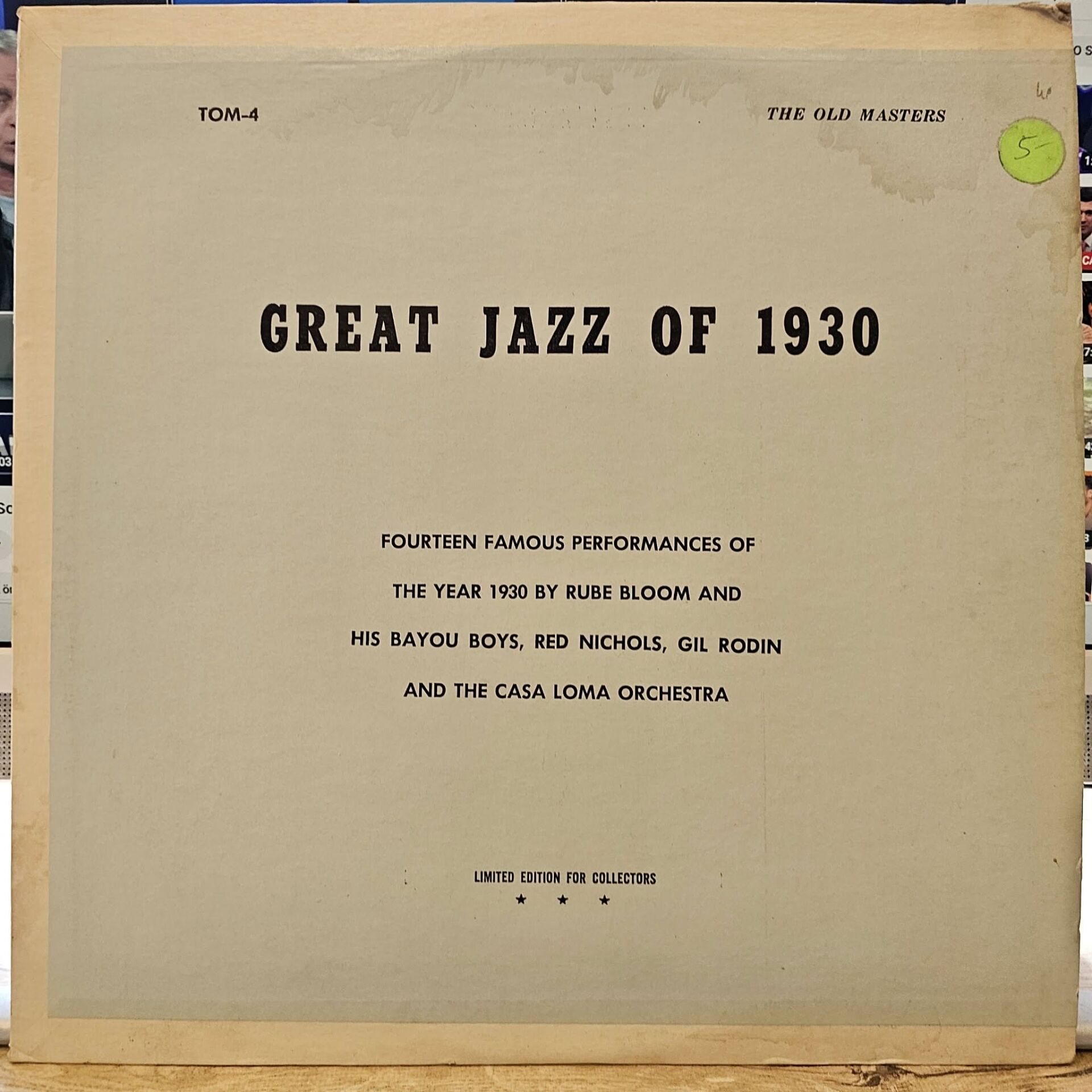 Rube Bloom And His Bayou Boys, Red Nichols, Gil Rodin And The Casa Loma Orchestra* – Great Jazz of 1930 LP PLAK