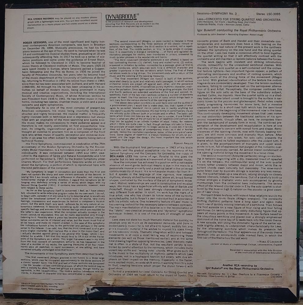Sessions* / Lees* - Igor Buketoff, Royal Philharmonic Orchestra* – Symphony No. 3 / Concerto For String Quartet And Orchestra LP PLAK...