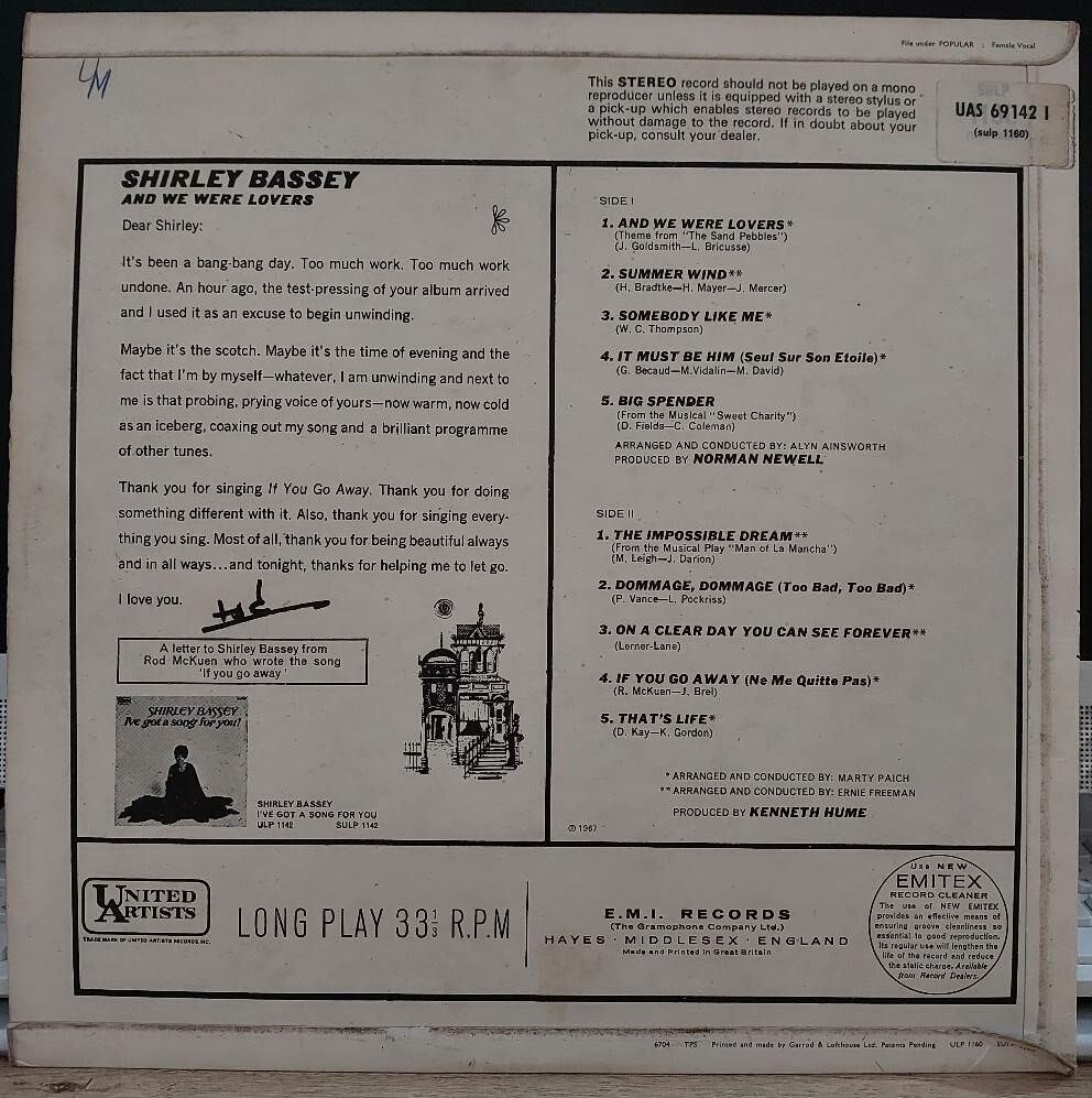 Shirley Bassey – And We Were Lovers LP PLAK