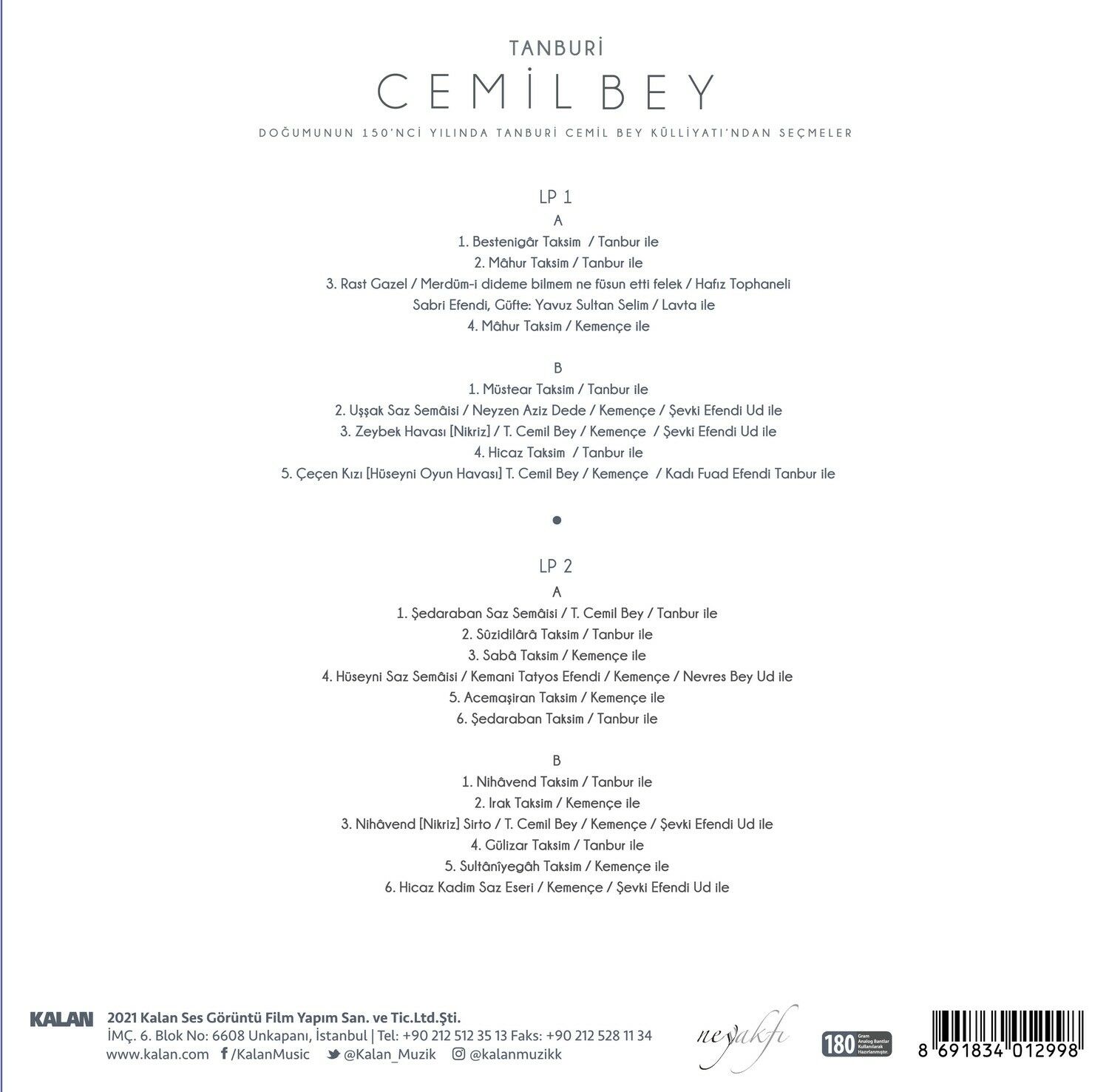 Tanburi Cemil Bey - Tanburi Cemil Bey Külliyatı'ndan Seçmeler LP PLAK