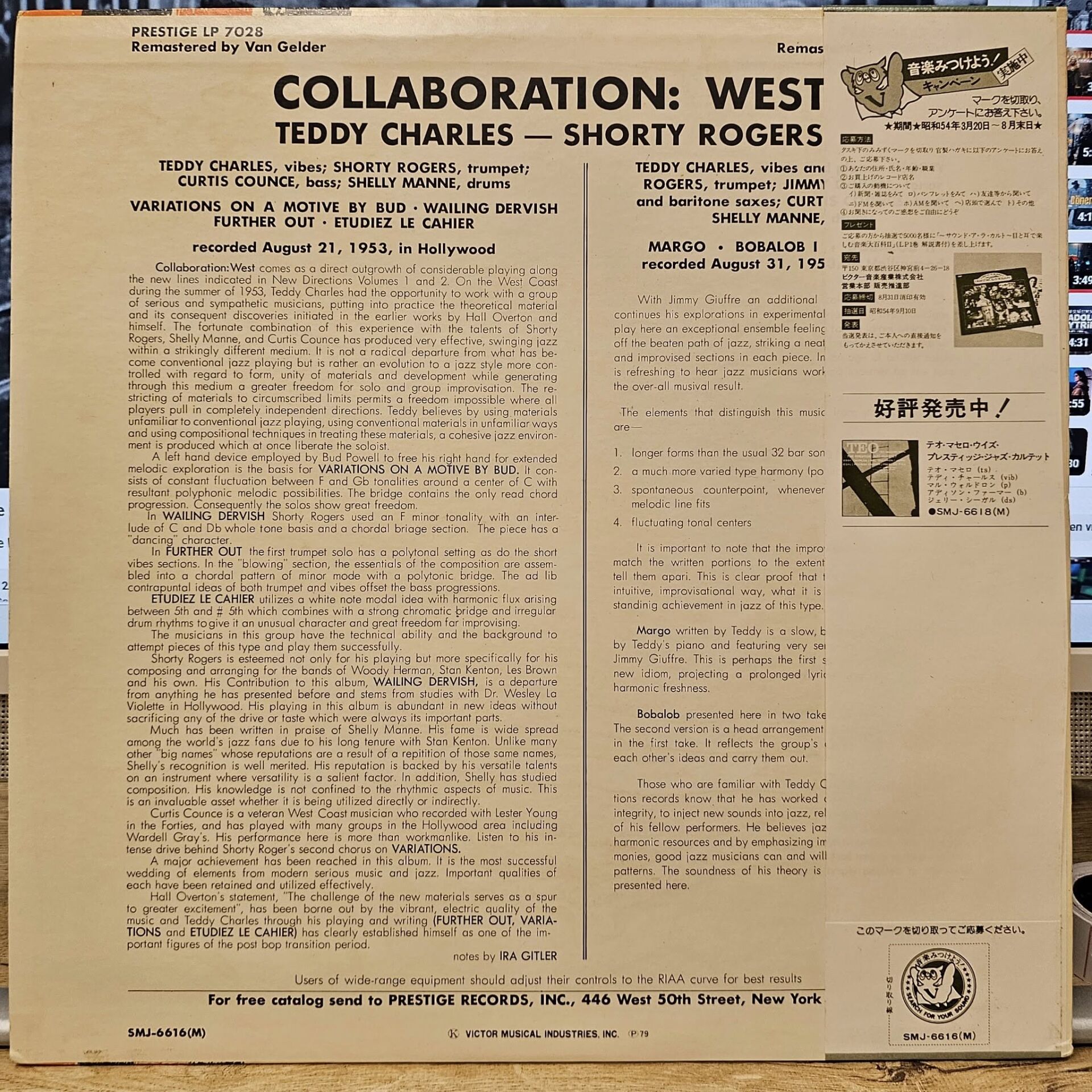 Teddy Charles / Shorty Rogers / Shelley Manne* / Jimmy Giuffre – Collaboration West LP PLAK