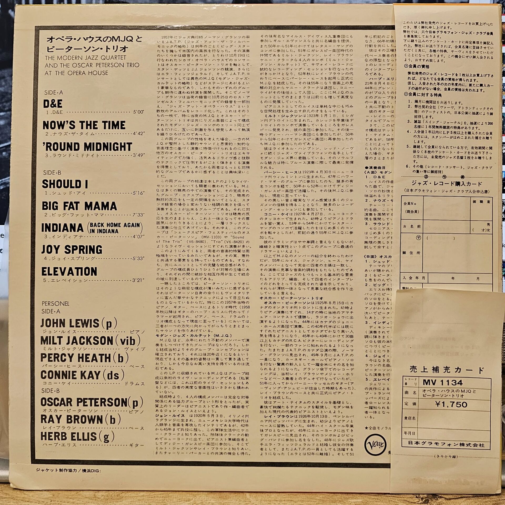 The Modern Jazz Quartet And The Oscar Peterson Trio – At The Opera House LP PLAK...