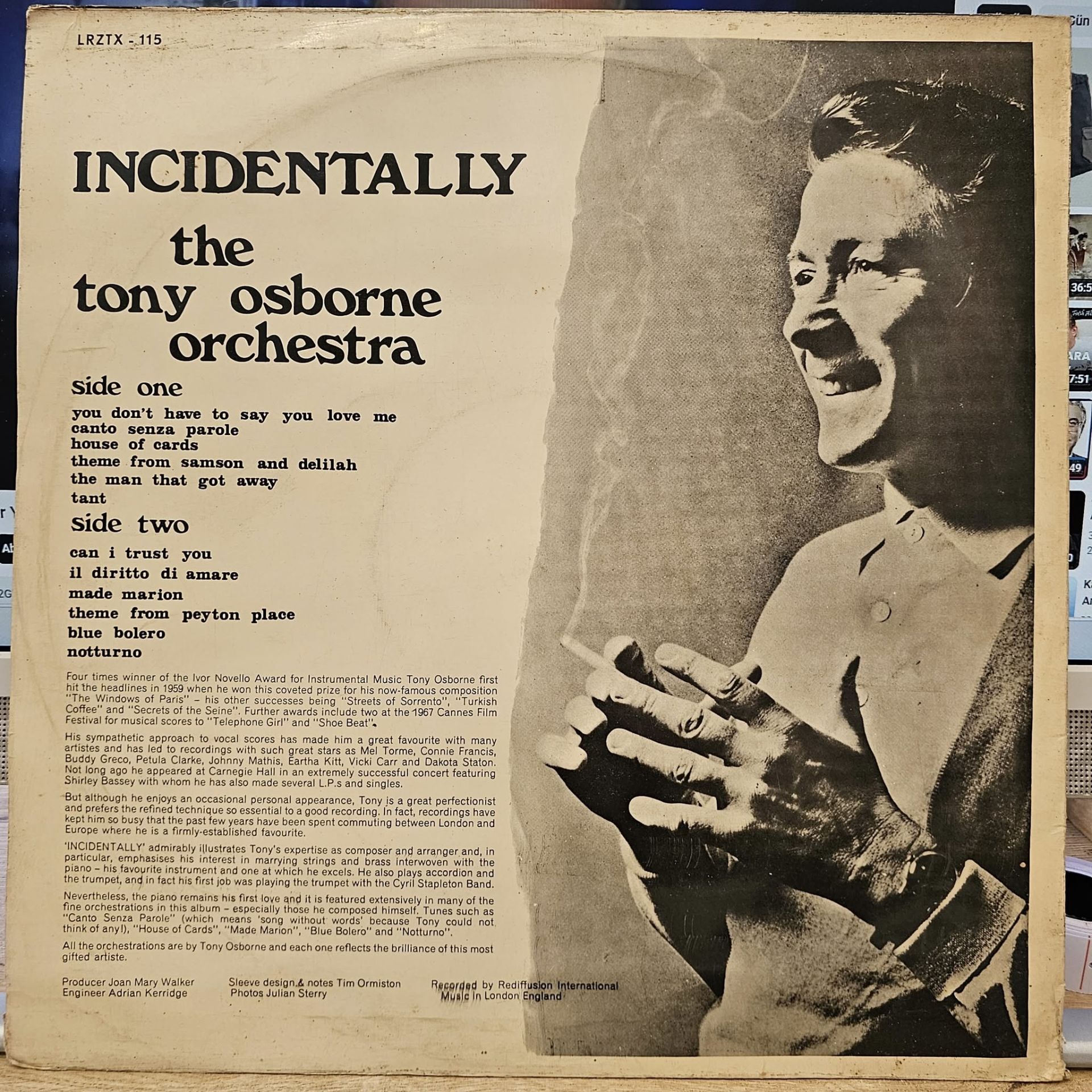 The Tony Osborne Orchestra – Incidentally LP PLAK