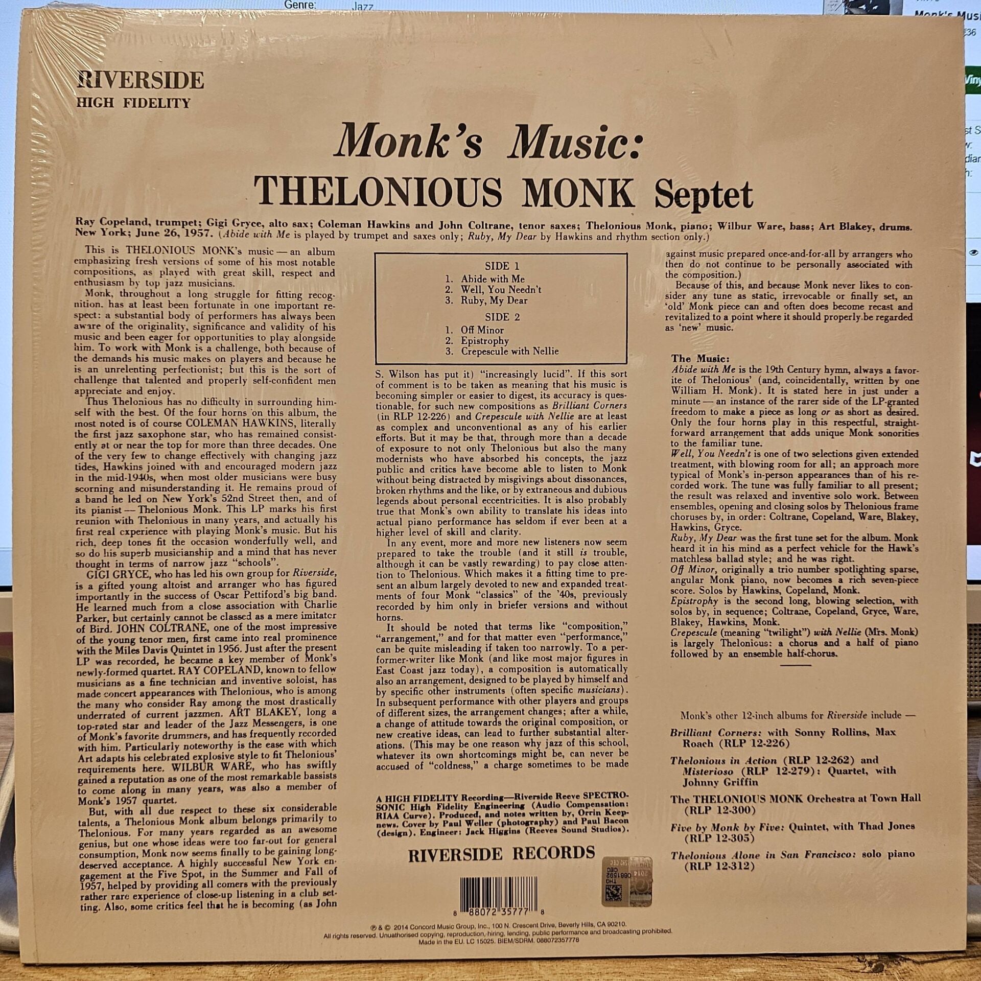 Thelonious Monk Septet – Monk's Music LP PLAK