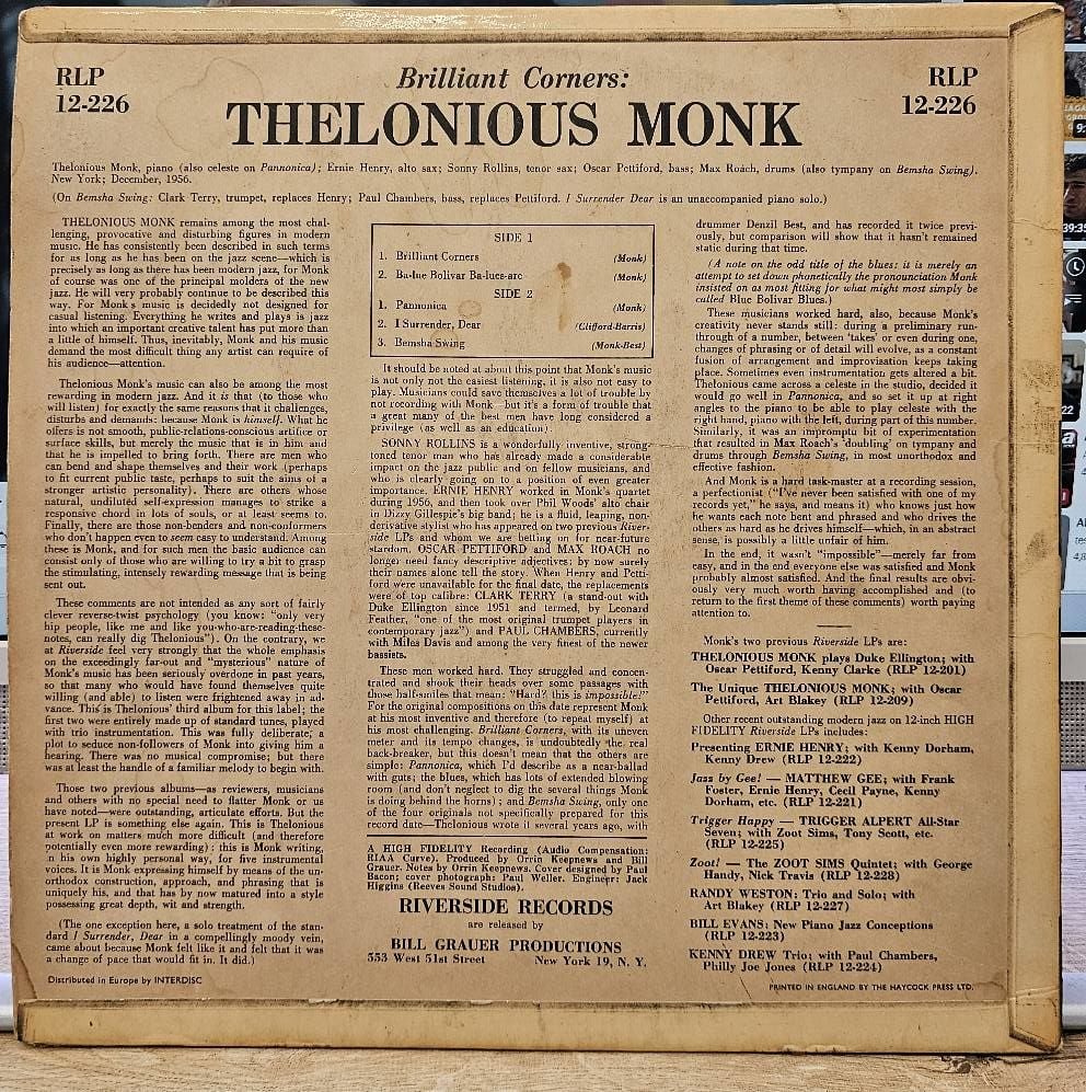 Thelonious Monk With Sonny Rollins, Ernie Henry And Clark Terry – Brilliant Corners LP PLAK...