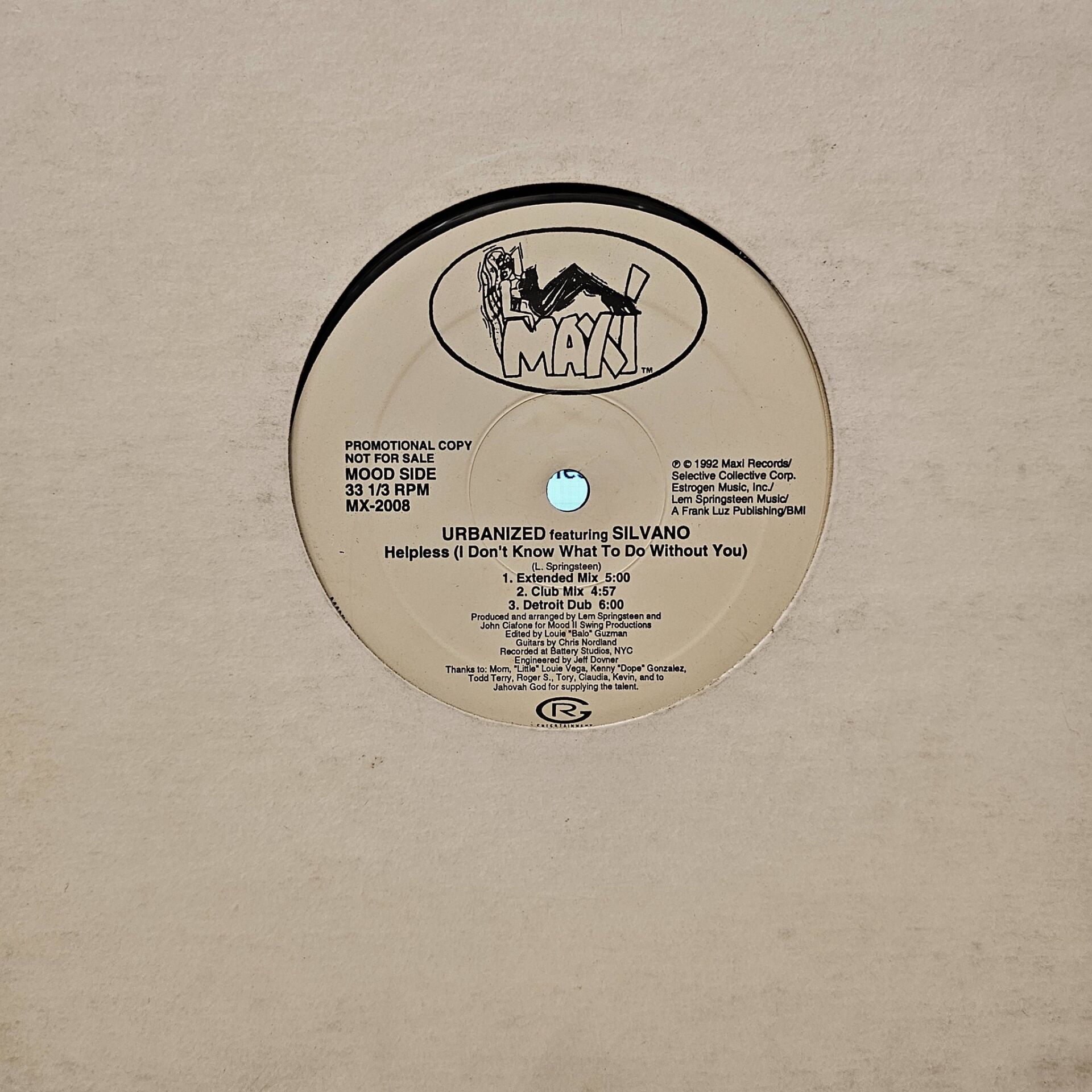 Urbanized Featuring Silvano – Helpless (I Don't Know What To Do Without You) LP PLAK
