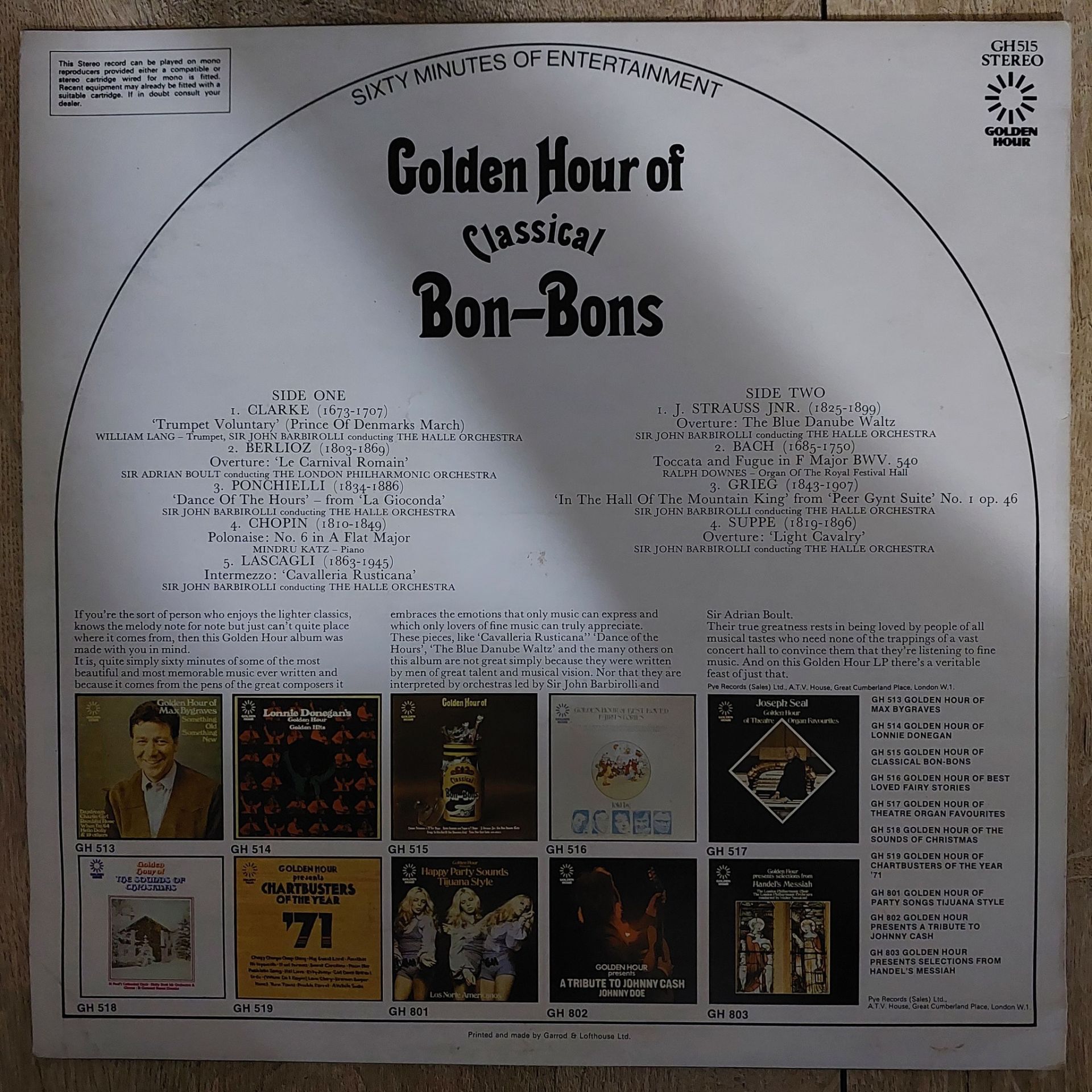 Various – Golden Hour Of Classical Bon-Bons LP PLAK