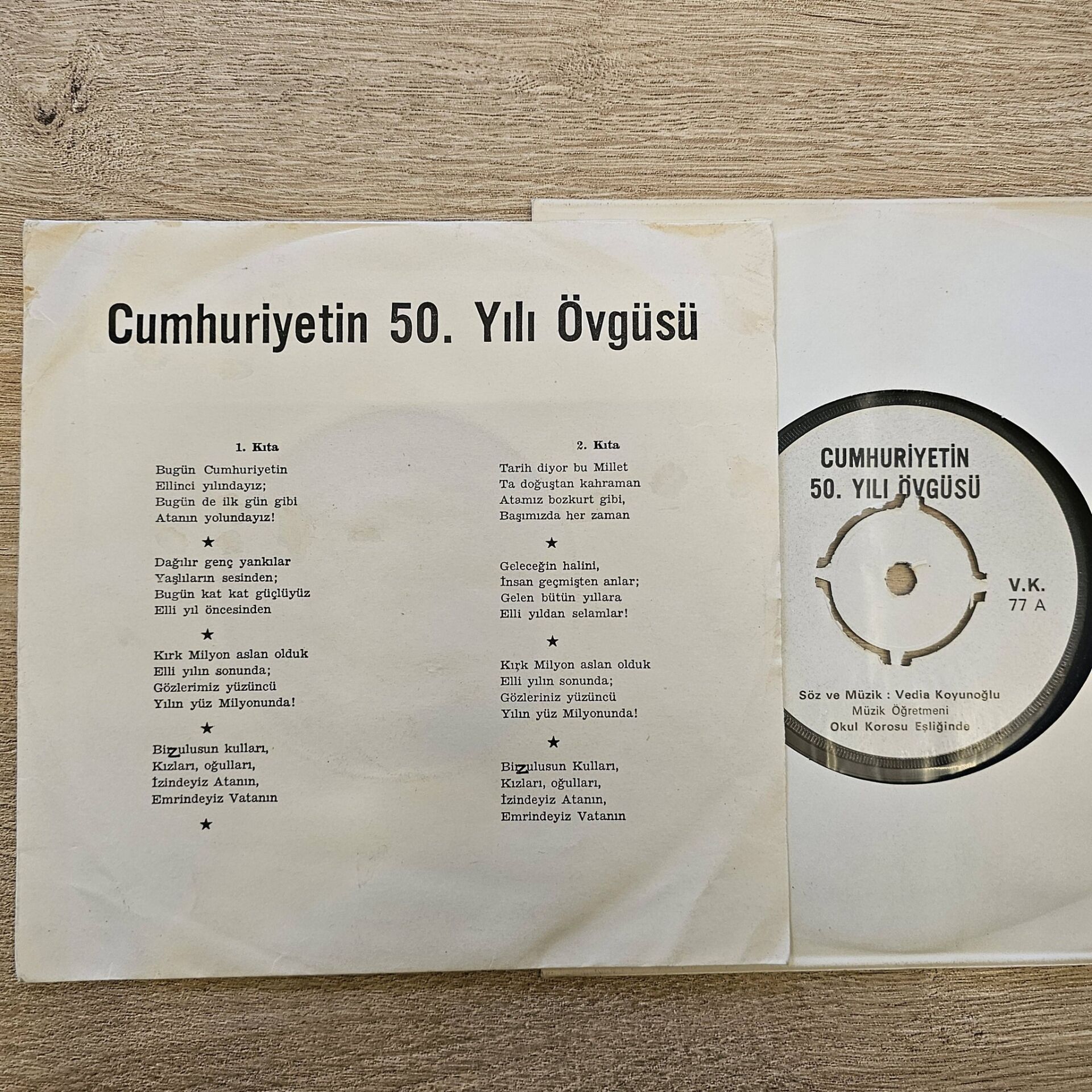 Vedia Koyunoğlu Okul Korosu Eşliğinde – Cumhuriyetin 50.Yılı Övgüsü 45LİK PLAK